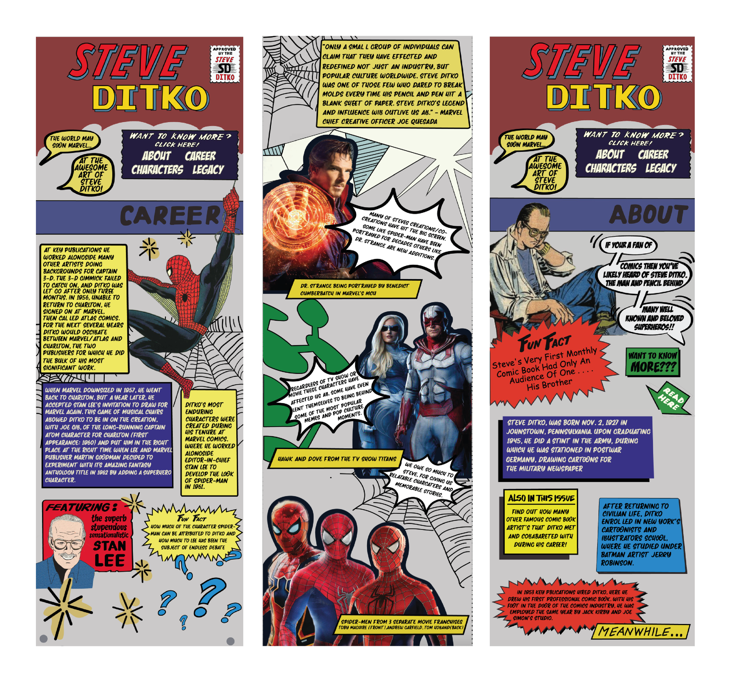 This website was created to honor and celebrate the life and legacy of pioneering comic book artist Steve Ditko. All of the pages take inspiration from his illustration style and some of his most classic comic books.